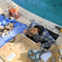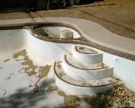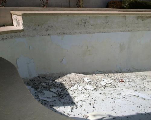 This is the story of a pool redo where the plaster had been coated with an epoxy/fiberglass type of coating that had failed.